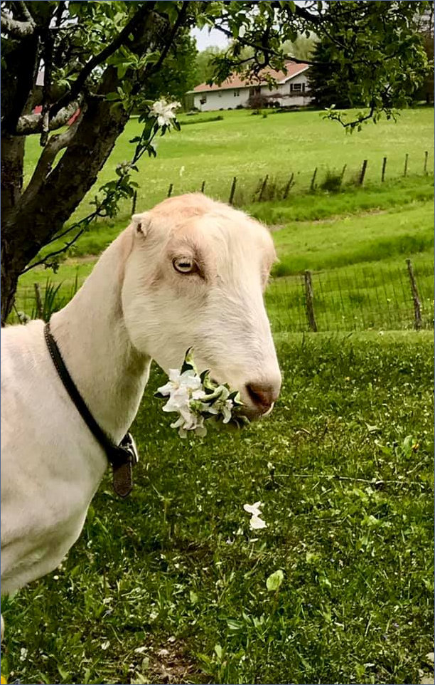rotational grazing and awareness of Here on a retired creamery's rural Ohio knoll, we hope to make our mark and deepen our understanding of the ebbs and flows of life with a registered dairy goat herd. We have 5 acres in hay and have improved it with alfalfa, minus one failed attempt, we have fought flooding, dug ditches and worked hard on pasture management. We compost and grow a huge garden, raise pigs with the excess milk, make yogurt and cheese for the family. We rotate through egg laying chickens and meat birds as well as allowing our Aussie Shepherd to round up any stragglers. We welcome visitors looking for goats or just ideas for their own barns, pasture setups, or just some good goat banter. (Masks for now). The current herd gets its base from King-Farm, Mint*Leaf, Autumn-Acres, Little Orchard and now Lucky 4-Leaf. The name itself comes from the glee I experienced when I finally figured out what was making holes in all of my flower pots as I first started "nesting" on our new farm, before baby one came. Sticking my finger into one of the tunnels I was lucky not to be bitten by something terrible in my moment of thoughtlessness. Instead a very grumpy toad leapt out to see what had disturbed her mid-day slumber. I have been blessed with many fine people in the goat community, once again, as I've celebrated and stumbled through the work and show life with two tiny tots in tow. It is the good life, the engaged life, pure bliss, with a pitchfork. Please enjoy your look around our website and let me know if you see something you are interested in.